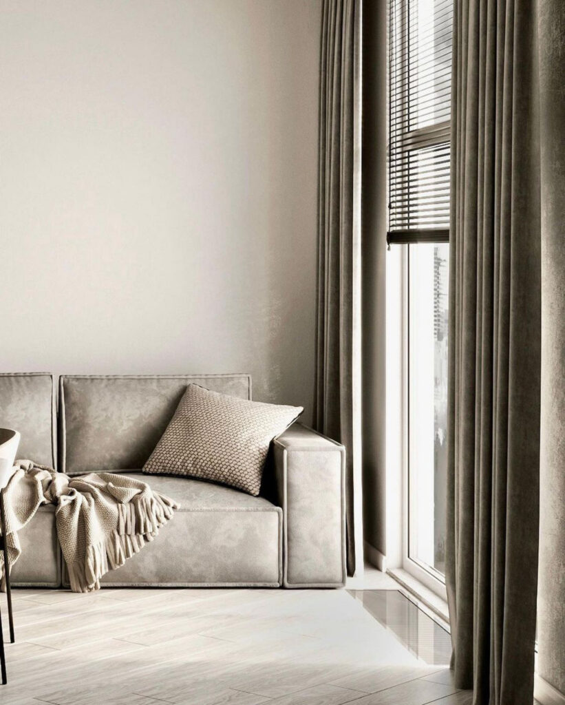 Проект объединенной кухни-гостиной площадью 17,4 квадратных метра демонстрирует, как грамотное использование керамогранита Гриджио Оробико размером 80х160 см из коллекции Шарм Делюкс может преобразить пространство. Многогранный цвет этого материала придает помещению особый шарм, сохраняя при этом необходимую легкость и визуальную чистоту.