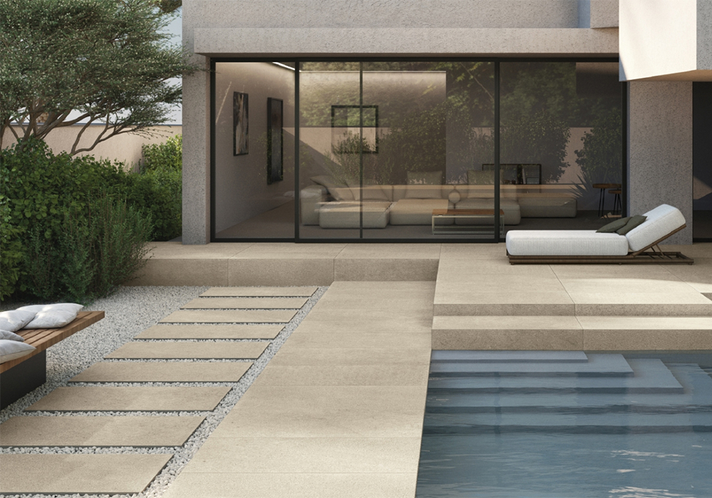 Отдельная версия X2 с увеличенной толщиной и противоскользящим покрытием решает задачи экстерьера. Материал выдерживает нагрузки, температурные перепады и влажность. Подходит для зон у бассейнов, где важна безопасность, садовых дорожек и открытых террас.